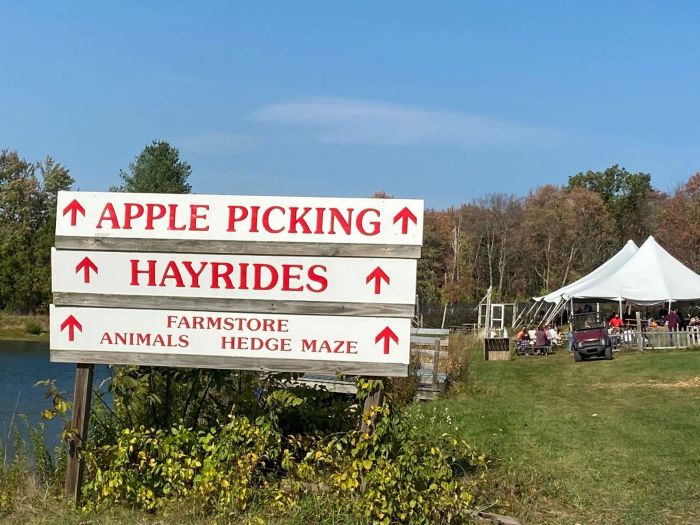 Connors Farm features hayrides along with a seemingly endless list of fall activities for the whole family, including a corn maze, baby animals, trains, and an expansive farm-themed play area with a giant jumping pillow, duck races, and more.