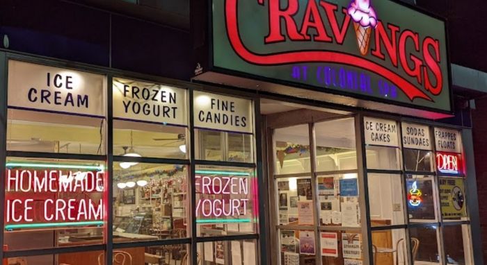 Cravings specializes in homemade ice cream, including custom-blended soft serve and frozen yogurt in a wide variety of flavors and non-dairy options, ice cream cakes and pies, home-brewed coffee, espressos and lattes, novelty candy, and fine chocolates.