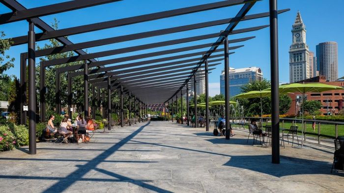 Cross Atlantic Ave to the Rose Kennedy Greenway (2 minutes) and head toward Faneuil Hall/North End, OR