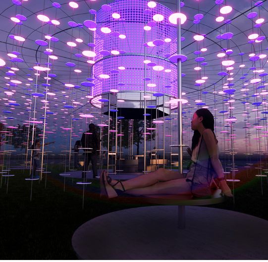 *Note - After ten years, the last of the iconic glow swings were removed in 2024, but have been replaced by some really cool new structures & features, including a kaleidoscope canopy. We miss the swings but look forward to new and creative installations to come.