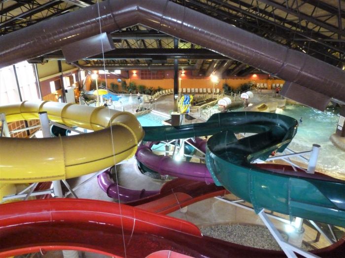 Other options are the two water park hotels near Story Land. Hampton Inn & Suites in North Conway is a good bet because it has an attached, indoor water park. [See our review of water park hotels near Story Land here.] Another great option USED TO BE Kahuna Laguna, which WAS located within the Red Jacket Resort complex before the fire. It is now permanently closed.